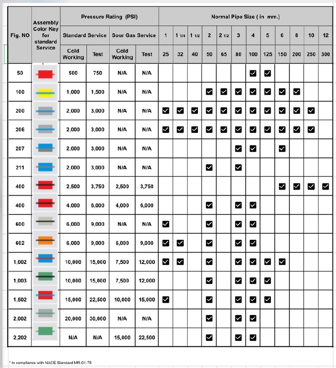 Recommended for air, water, oil, or gas service to 4,000 PSI NSCWP. Utilizes precision ball and cone seating surfaces for easy alignment and dependable pressure seal. Sizes over 4″ are rated to 2,500 PSI NSCWP. Also available with a lip-type seal in 2″ size only as Fig 402.