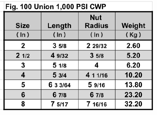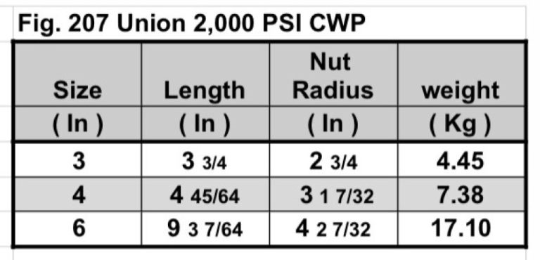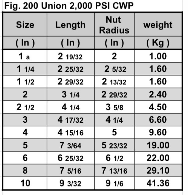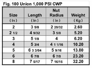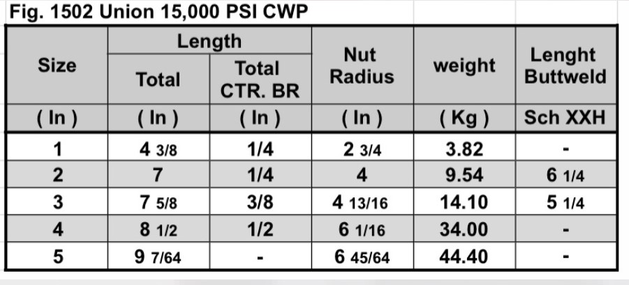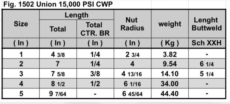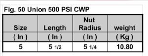 5″ size rated at 7,500 PSI CWP and 11,250 PSI test, 5″ unions for sour gas rated at 5,000 PSI CWP and 7,500 PSI test.
