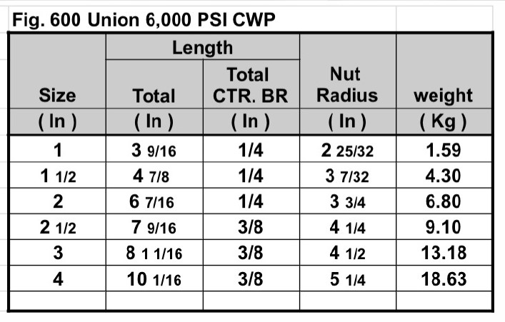 Recommended for air, water, oil, gas or mud service to 6,000 PSI NSCWP. This unions has a replaceable lip-type seal ring of Buna-N specifically designed to minimize fluid flow turbulence. Lip-type ring provides a pressure seal and protection for metal-tometal seating surfaces. Smaller and lighter than Fig. 600 unions and are recommended for manifold and truck mounting where size and weight are critical.