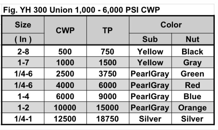 Fig YH 300 Union 1,000-6,000 PSI CWP