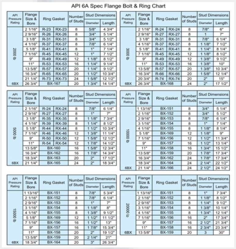 • Types RX and BX with complex beveled edge sections for wellhead pressures above